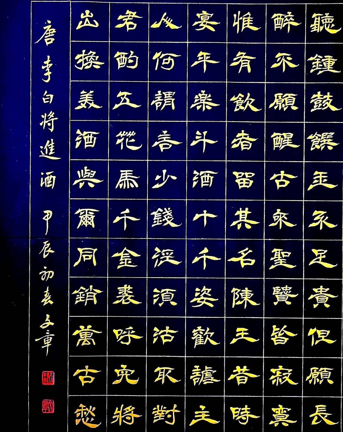 翟文章泥金隶书系列作品李白《将进酒》