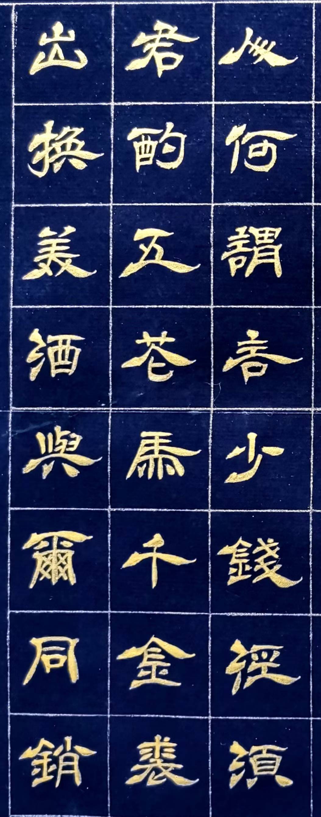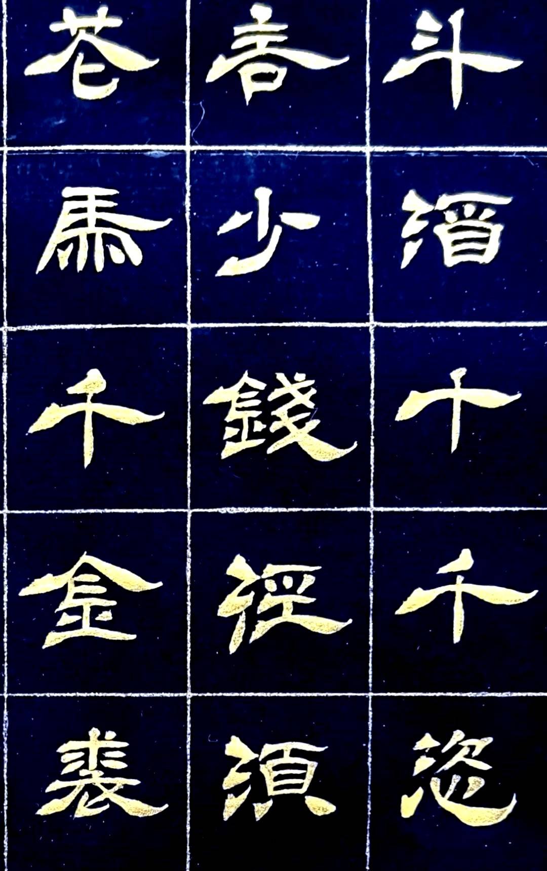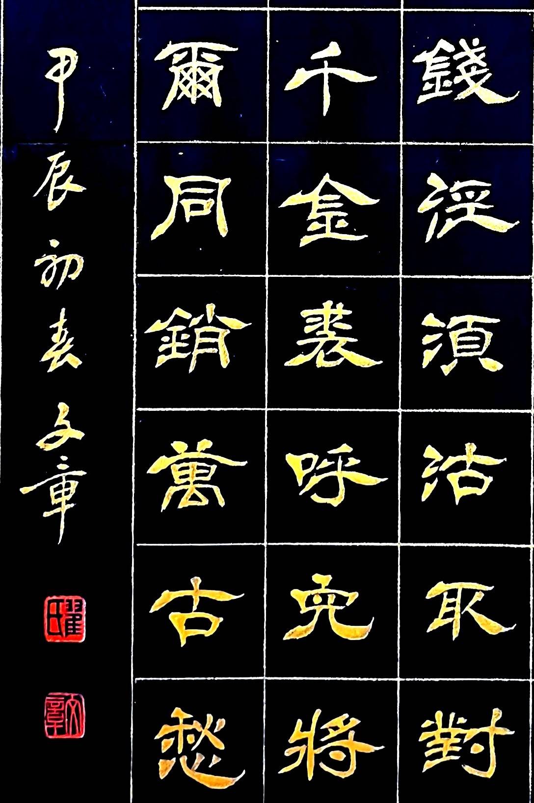 翟文章泥金隶书《将进酒》局部特写